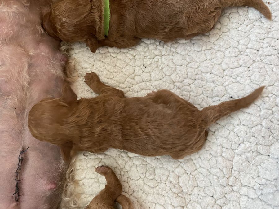 Náš pudlí Vrh L narozen 4.10.2021 nám dal trošku zabrat, ale i přes komplikace vám představujeme 1 holčičku a 2 kluky.